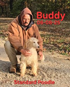 Born June 8th, 2025, Buddy is a gorgeous Apricot male Standard Poodle with a playful personality and a heart as big as his fluffy curls. πΆβ¨